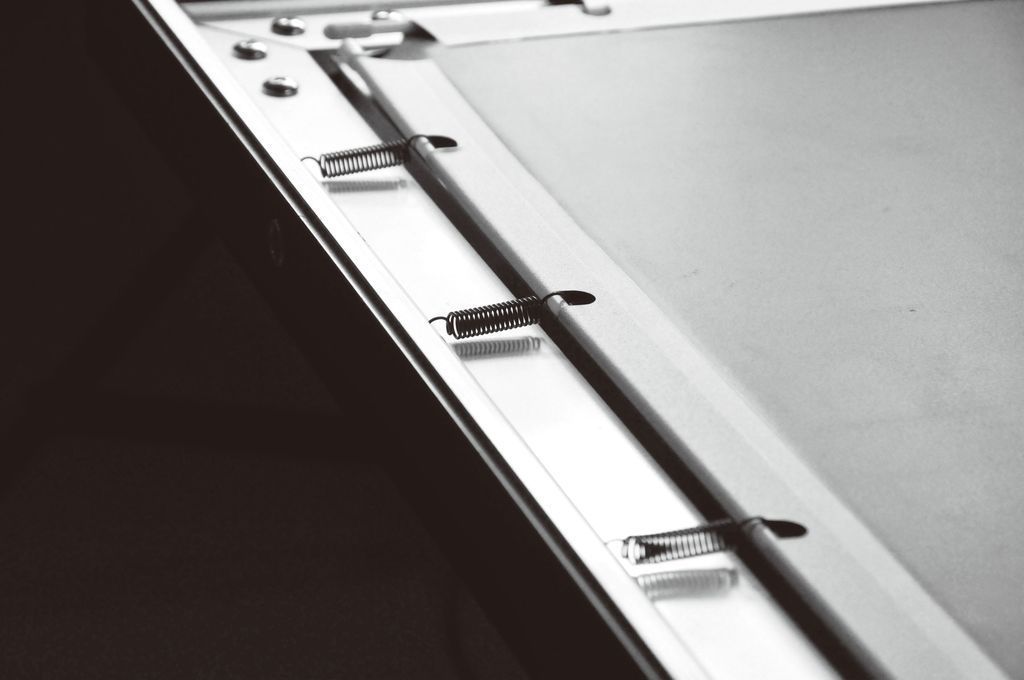 - Идеально плоское полотно с основой—материал PVC. Полотно равномерно натянуто по периметру рамки, что препятствует возникновению неровностей и волн во время эксплуатации;
