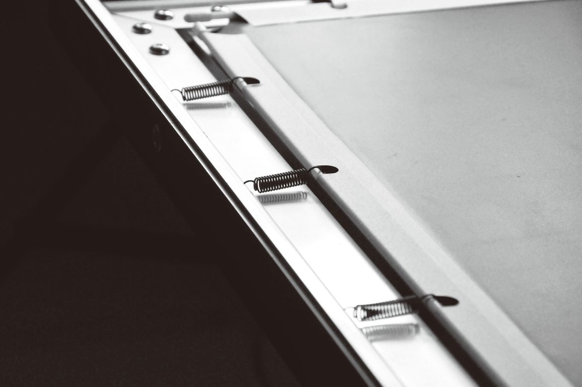 - Идеально плоское полотно с основой—материал PVC. Полотно равномерно натянуто по периметру рамки, что препятствует возникновению неровностей и волн во время эксплуатации.