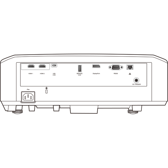 - Разъемы: Display Port in, HDMI x2 с поддержкой HDCP 2.3, USB Type C, USB Type A (питание 1.5 A), RS-232, LAN и Trigger (12 V).