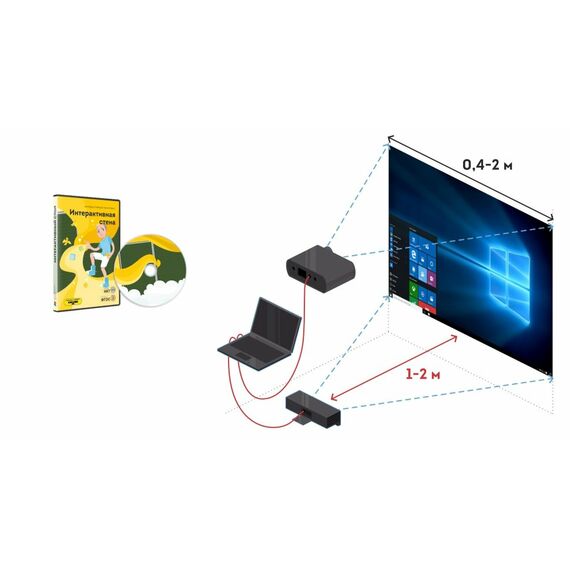 Программное обеспечение Интерактивная стена + Датчик движения позволяет превратить любую поверхность в сенсорную. Управлять изображением можно с помощью пальцев или указки. В комплект не входят занятия.