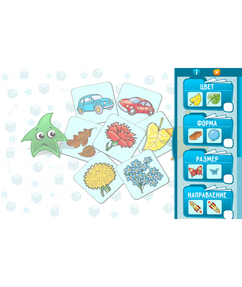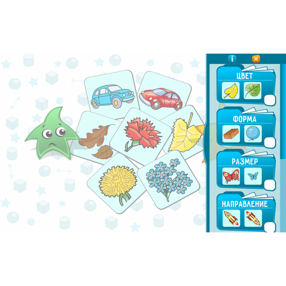 Пособие включает темы и игры на развитие внимания, памяти, мышления, расширение кругозора и словарного запаса. В каждую тему включены интерактивные задания с генератором вариантов, задания сопровождаются аудио инструкциями. Дошкольники научатся различать разнообразные цвета, сравнивать предметы на картинках, сортировать их по форме, цвету, величине, различать правую и левую сторону.