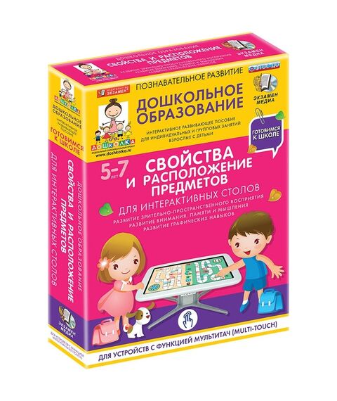 Описание Готовимся к школе: СВОЙСТВА И РАСПОЛОЖЕНИЕ ПРЕДМЕТОВ Для интерактивных столов (ФГОС ДО) 5 – 7 лет.