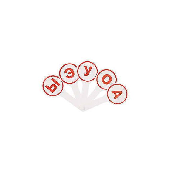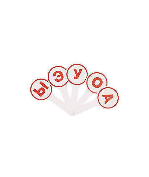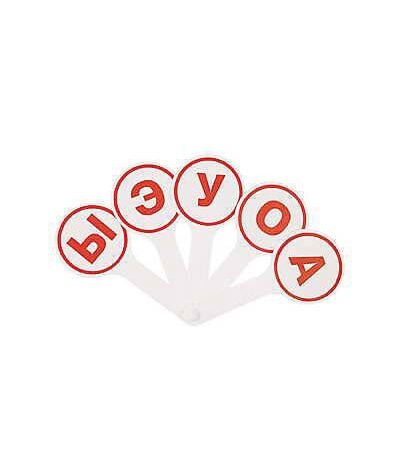 Изготовлена из пластмассы. Представляет собой комплект пластинок, соединенных аналогично соединению деталей веера, с буквами, обозначающими гласные звуки русского языка. Буквы выполнены крупным шрифтом и нанесены яркой краской.