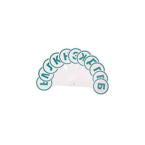 Изготовлена из пластмассы. Представляет собой комплект пластинок, соединенных аналогично соединению деталей веера, с буквами, обозначающими согласные звуки русского языка. Буквы выполнены крупным шрифтом и нанесены яркой краской.