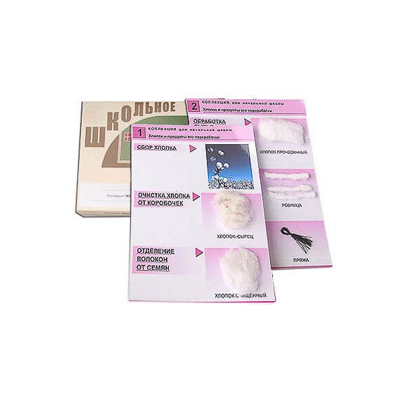 Габаритные размеры в упаковке (дл.*шир.*выс.), см: 30,5*22*3. Вес, кг, не более 0,2. Коллекция поставляется в картонной коробке. Образцы хлопка, пряжи, нитей и тканей размещены на картонных ламинированных планшетах. Сопровождаются краткими пояснениями технологии переработки хлопка.
