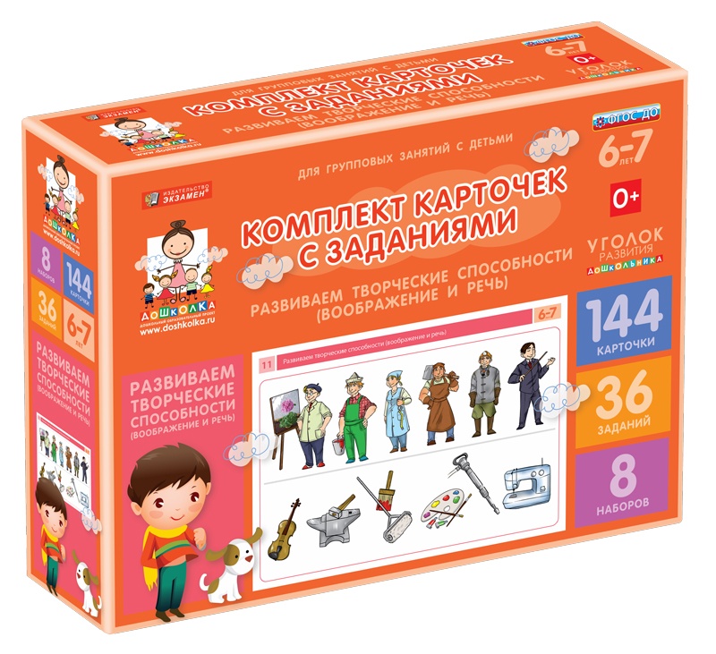 Описание Комплект карточек с заданиями для групповых занятий с детьми от 6 до 7 лет. Развиваем творческие способности (воображение и речь)