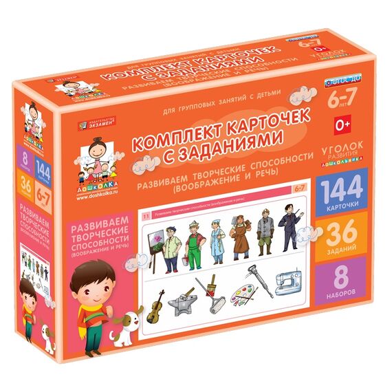Комплект карточек с заданиями для групповых занятий с детьми от 6 до 7 лет. Развиваем творческие способности (воображение и речь).