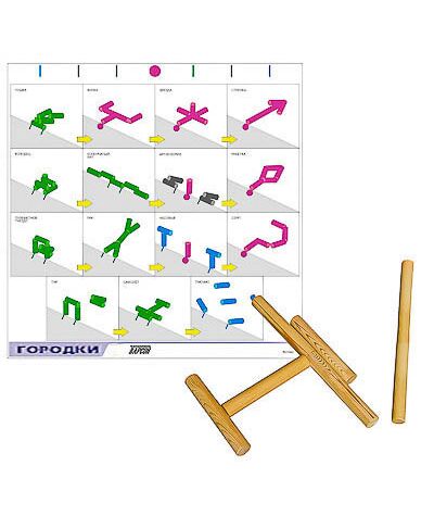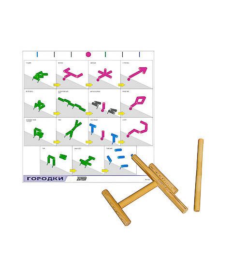 На коврике изображены 15 городошных фигур в порядке их освоения, а также нанесена разметка для правильной их постановки. Размер коврика, 80*80 см, совпадает с размером «города», используется для очерчивания игрового пространства. Коврик изготовлен из винила, легко сворачивается в рулон для хранения и транспортировки, а также легко разворачивается в рабочее положение. Рюхи и биты изготовлены из дерева.