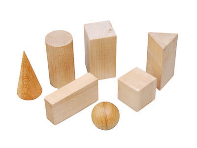 Геометрические тела изготовлены из дерева, неразборные.