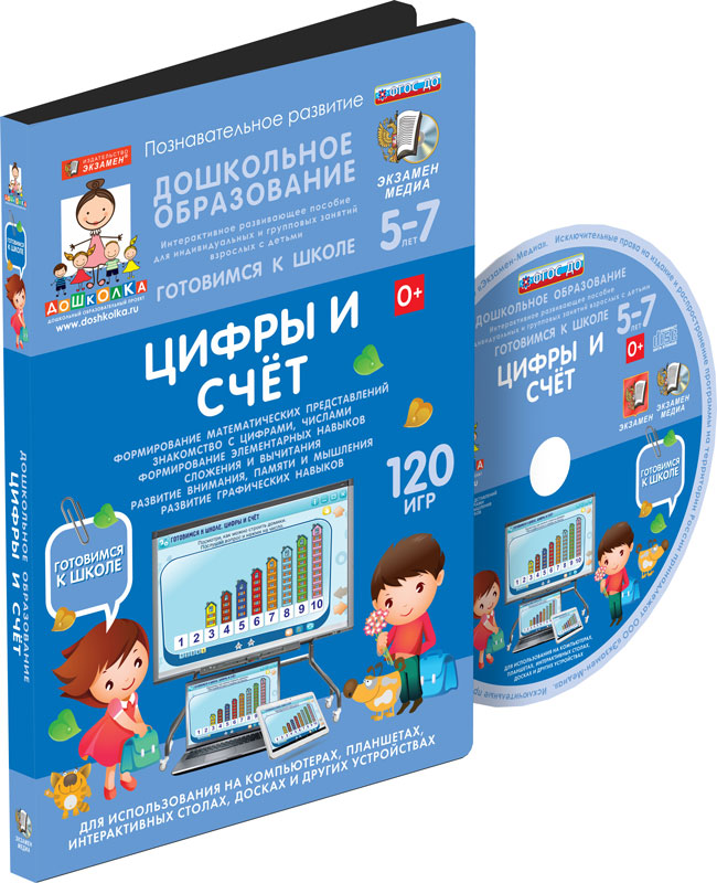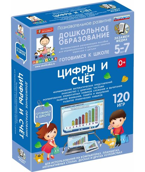 Готовимся к школе: ЦИФРЫ И СЧЕТ— интерактивное развивающее пособие для индивидуальных и групповых занятий взрослых с детьми старшего дошкольного возраста.