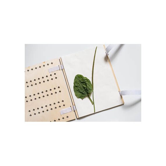 Папка изготовлена из фанеры с вентиляционными отверстиями, предназначена для работы в полевых условиях со сбором гербарного материала. Папка имеет удобную систему фиксации, позволяющую использовать ее на всех ступенях образования. Комплектуется листами адсорбирующей бумаги.