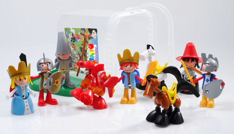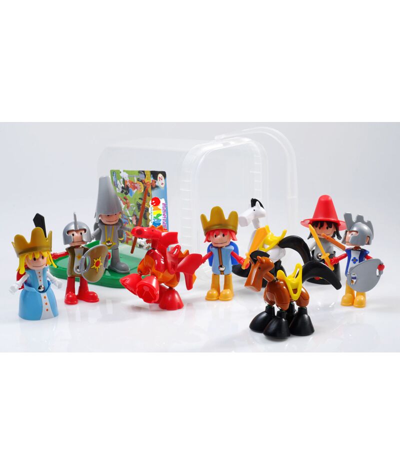 Набор «Принцы и принцессы» включает 59 деталей, из которых можно построить одновременно 9 фигурок для сюжетной игры: принца, принцессу, ведьму, двух рыцарей, стражника, двух лошадей и дракона. Кроме того, в набор входят некоторые дополнительные детали — седла для лошадей, короны, шляпа, а также метла, мечи, щиты, которые можно вставить в руки персонажей. Каждая фигурка состоит из нескольких частей: туловище, голова, ноги и разные аксессуары (шляпа, меч и др.).