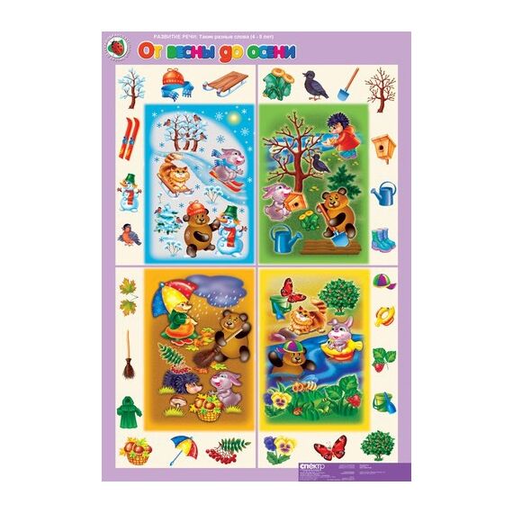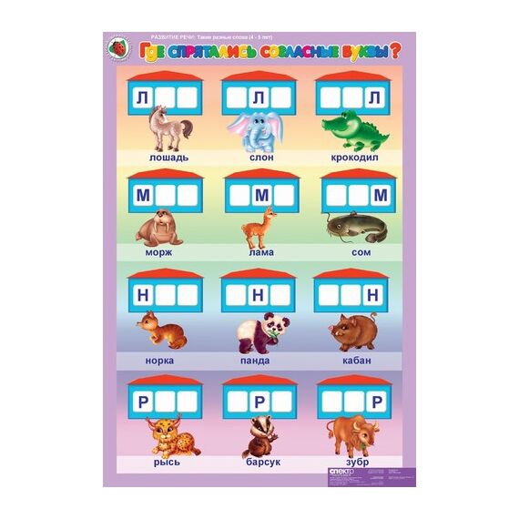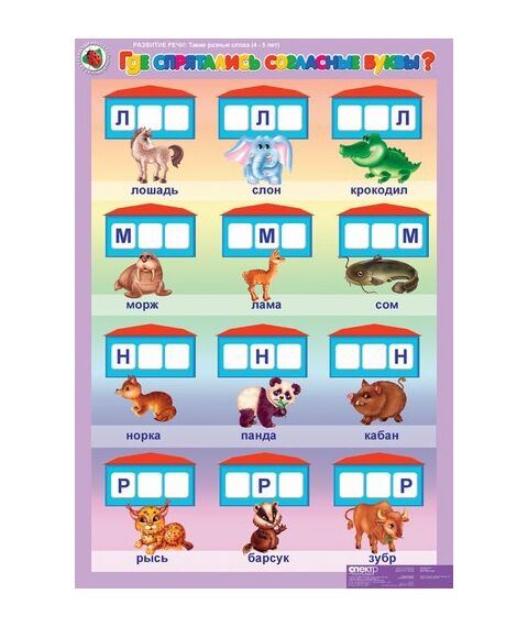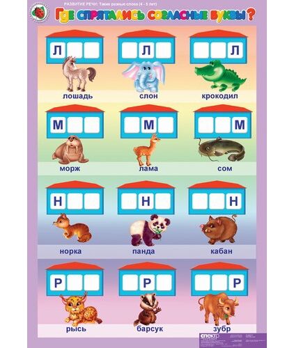 Предназначен для развития речи и фонематического слуха дошкольников. Использование карточек, входящих в каждый комплект, расширяет дидактические возможности демонстрационных таблиц. Карточки стимулируют речевую активность дошкольников, позволяют каждому ребенку принять деятельное участие в обсуждении новой информации. Комплект таблиц состоит из 5 листов +16 карточек. Таблицы отпечатаны на полиграфическом картоне плотностью 250 гр./м2, форматом 68x98 см. Печать и мелование односторонние. Красочность 4+0(полноцвет). В комплект альбома входит брошюра с методическими рекомендациями для педагога. Содержание комплекта: