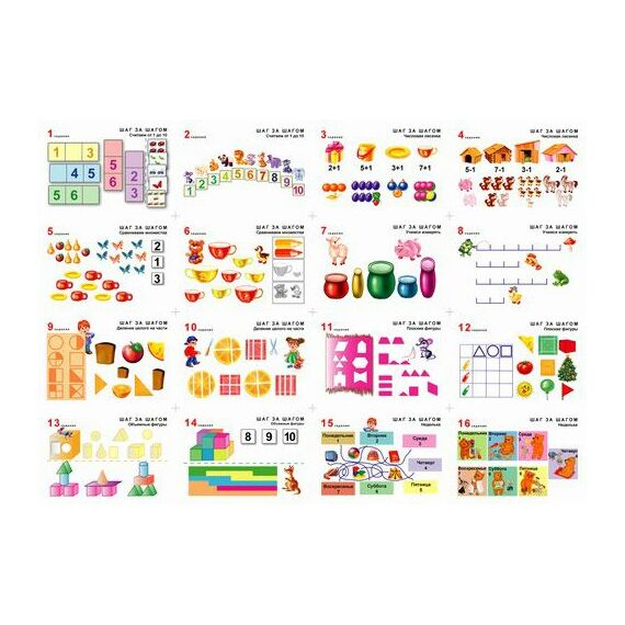 Предназначен для знакомства детей с элементарными математическими представлениями. Использование карточек стимулирует речевую активность дошкольников, позволяет каждому ребенку принять деятельное участие в обсуждении новой информации.