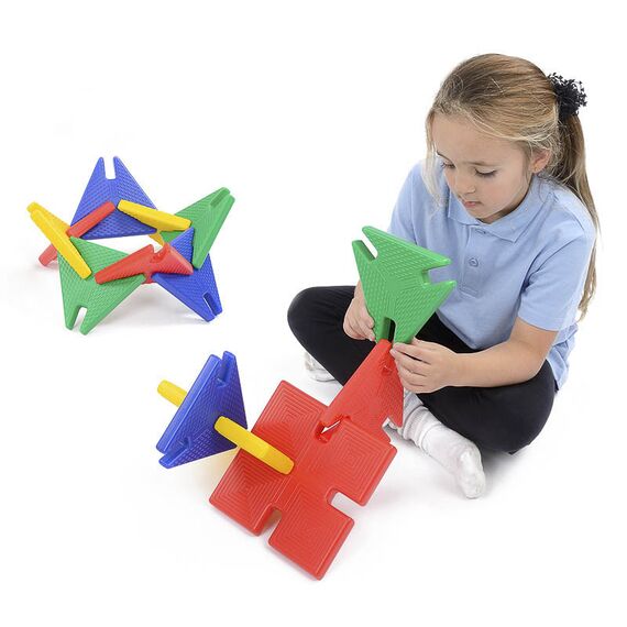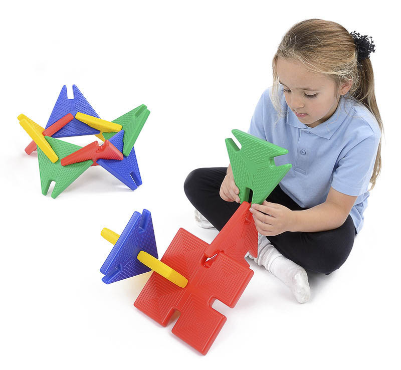 Предназначен для групповой игровой деятельности. Набор, позволяет изучать свойства 2- и 3-мерных фигур. Помогает развивать пространственное воображение детей в раннем возрасте. Способствует социально-коммуникативному, физическому, речевому развитию. Знакомит детей с основами строительства и дизайна (ребенок собирает большую конструкцию, величиной в свой рост и более). Игра с конструктором укрепляет мышцы кисти.