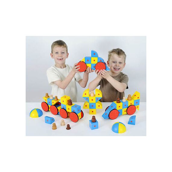 Комплектность: 20 кубиков, 12 треугольников, 8 пар колес, 8 сферических частей, 8 частей цилиндров и 12 фигурок.