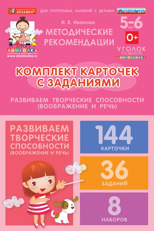 Описание Комплект карточек с заданиями для групповых занятий с детьми от 5 до 6 лет. Развиваем творческие способности (воображение и речь)
