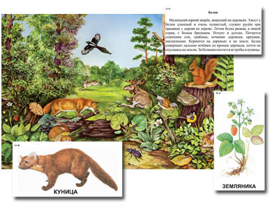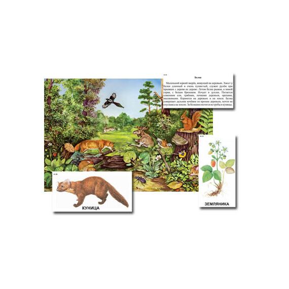 Пособие включает: плакат с изображением участка леса – 1 шт., магнитные карточки с изображениями лесных растений, животных, грибов – 43 шт., магнитные карточки для заметок - 2 шт., карточки с описаниями – 39 шт. (общее количество карточек 84 шт.), фломастер на водной основе с ластиком – 1 шт., учебное пособие «Биоразнообразие и взаимосвязи в природных сообществах» (автор Л. Н. Дорохина – 48 страниц - печать офсетная, обложка полноцветная) - 1 шт.