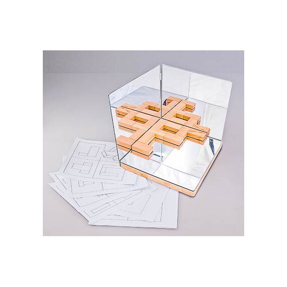 Комплектность: деревянные параллелепипеды – 8 шт., листы с изображениями и чертежами фигур – 8 шт., зеркальный уголок – 1 шт., руководство по эксплуатации с методическими рекомендациями – 1 шт.