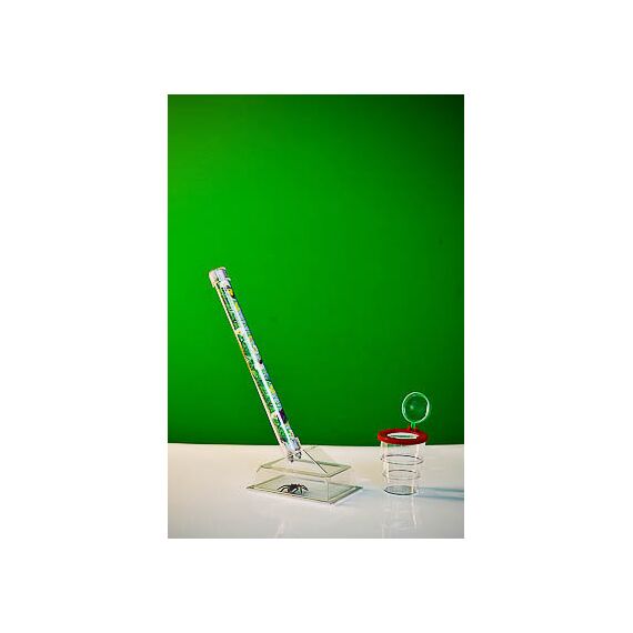 Складной стакан имеет две линзы и предназначен для детального изучения насекомых. В крышке имеются отверстия для сообщения с атмосферой.