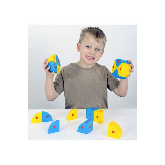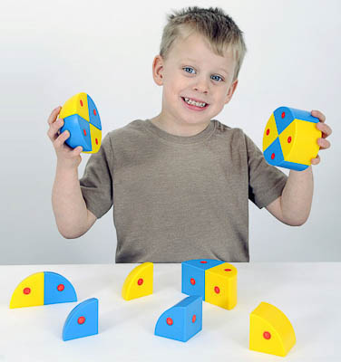 Комплектность: 4 части сфер голубого цвета, 4 части сфер желтого цвета, 4 части цилиндра голубого цвета, 4 части цилиндра желтого цвета.