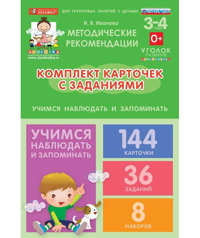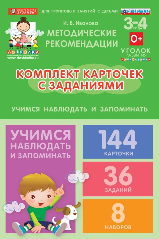Описание Комплект карточек с заданиями для групповых занятий с детьми от 3 до 4 лет. Учимся наблюдать и запоминать