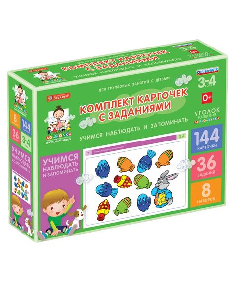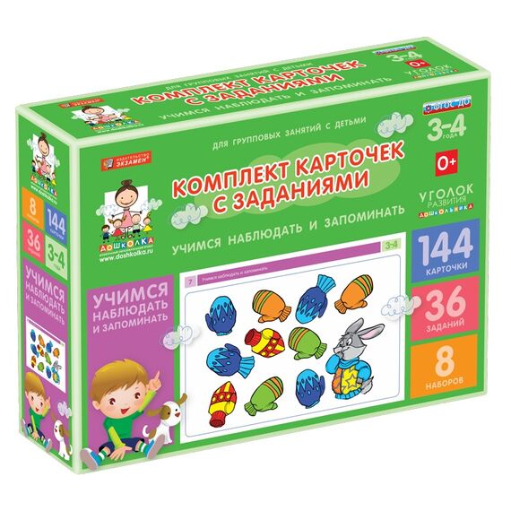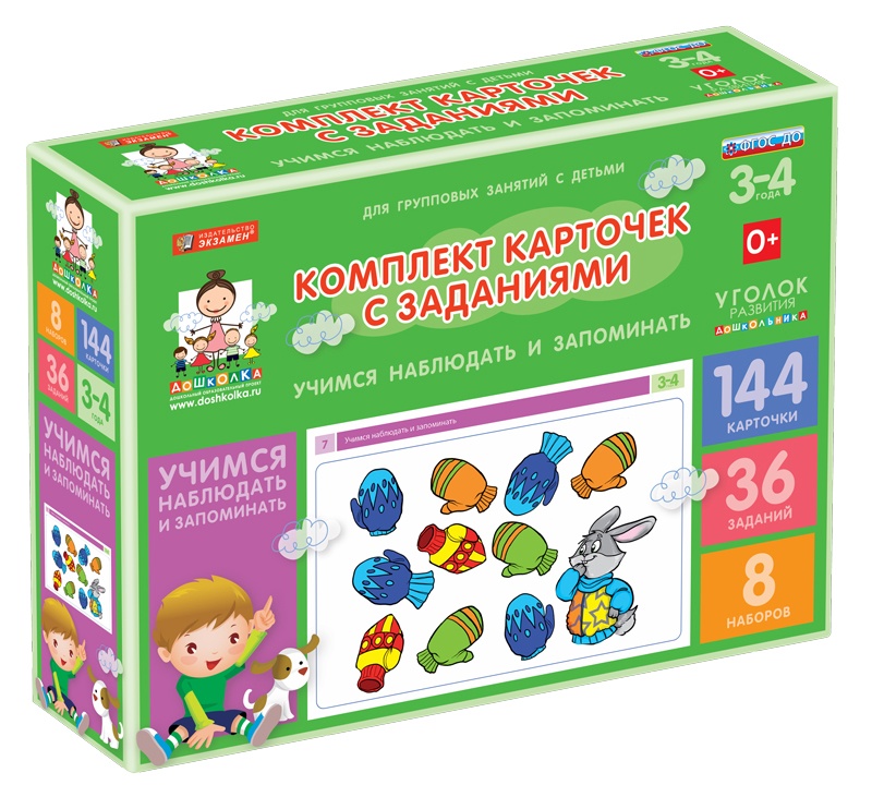 Комплект карточек с заданиями для групповых занятий с детьми от 3 до 4 лет. Учимся наблюдать и запоминать