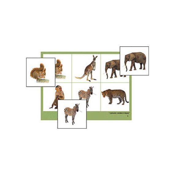 Описание Лото "Дикие животные" (4 планшета, 24 карт., цвет., ламинир.)