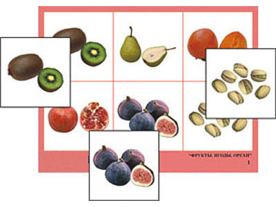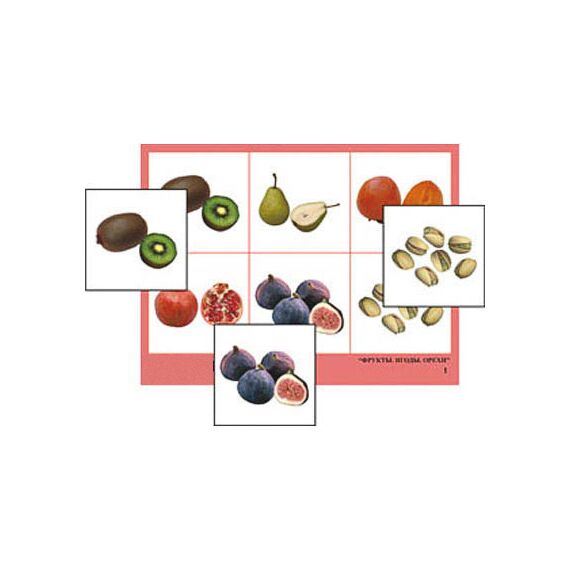 Описание Лото "Фрукты, ягоды, орехи" (4 планшета, 24 карт., цвет., ламинир.)