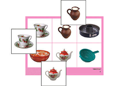 Описание Лото "Посуда" (4 планшета, 24 карт., цвет., ламинир.)