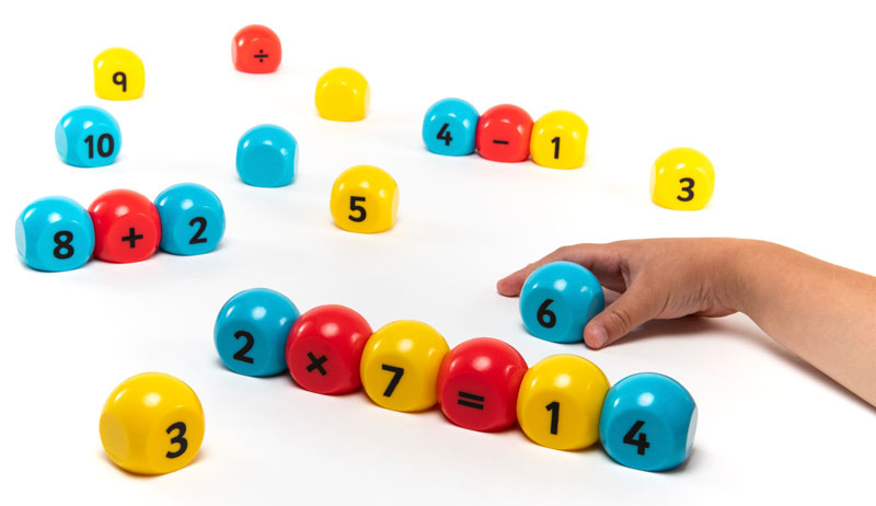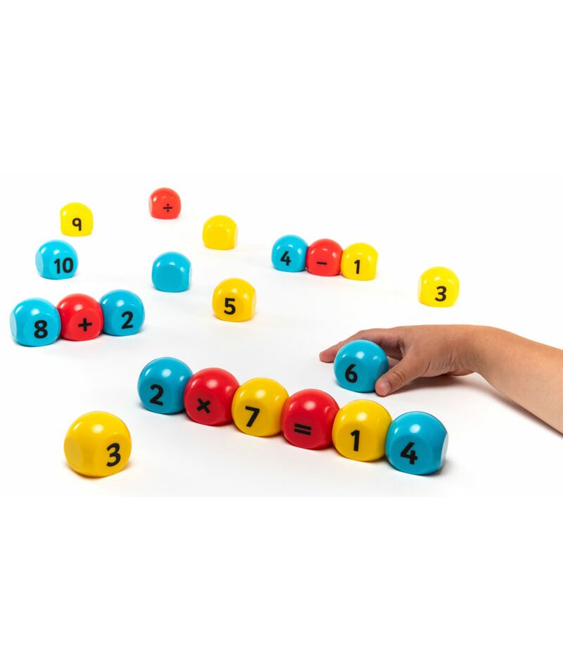 Этот набор содержит 16 чисел (числа от 0 до 10 плюс дополнительные блоки от 1 до 5) и 5 математических знаков (по 1 операции сложения, вычитания, умножения, деления и равенства).