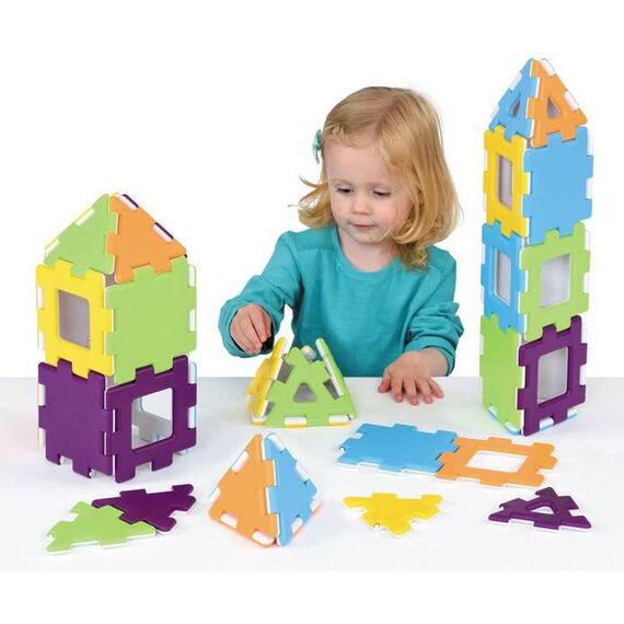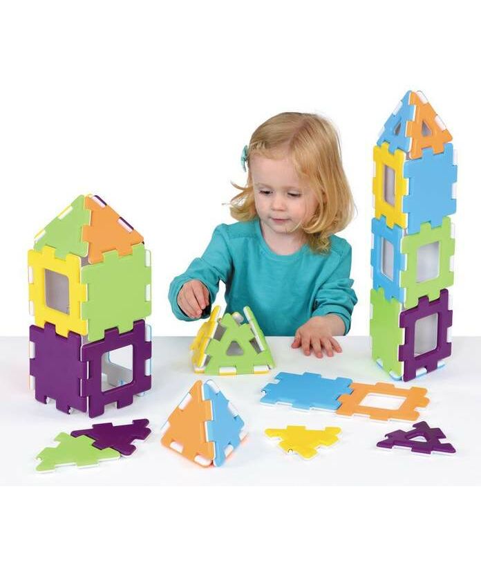 Набор предназначен как для индивидуальной, так и для групповой игровой. Система крепления позволяет легко соединять детали даже маленьким детям и создавать потрясающие 2D и 3D модели. Набор идеально подходит для развития креативности, командной работы, распознавания цветов и игровой деятельности а также помогает детям познакомиться с понятиями форма и пространство.