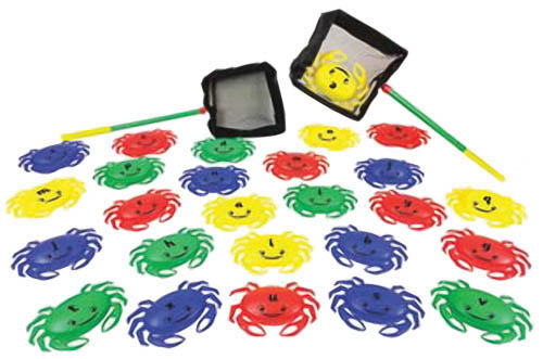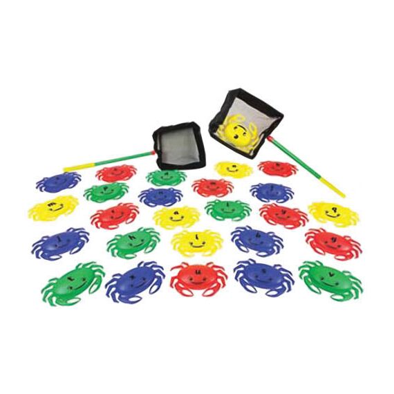 Комплектность: 20 крабов 4-х разных цветов с нумерацией от 1 до 20 и 2 большие сетки для ловли крабов. Размер крабов - 22 см в диаметре. Длина сетки вместе с ручкой - 75 см. В набор входит сетка для хранения.