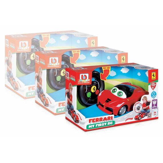 Набор радиоуправляемых машинок Мои первые гонки 1 состоит из 2ух машинок Феррари для самых маленьких с глазами на лобовом стекле. Каждая машинка изготовлена из гипоалергенного, ударопрочного, стойкого к щелочам и моющим средствам пластика.