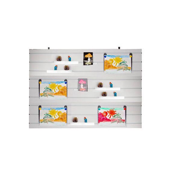 Комплектность: щит ламинированный с пластмассовыми вставками – 1 шт., полки пластмассовые 250х100 мм – 12 шт., подвески металлические для магнитных держателей – 6 шт., кнопки магнитные – 8 шт., комплект для крепления (шурупы 4*30 – 4 шт., дюбели – 4 шт.), руководство по эксплуатации – 1 шт.