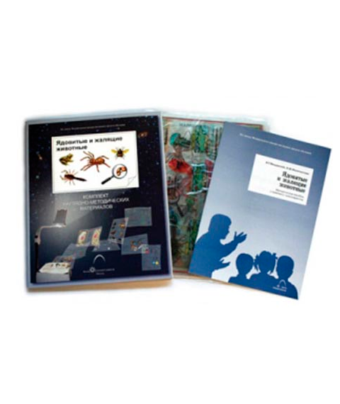 Темы комплекта: медузы, скорпион и тарантул, паук-каракурт, кольчатая сколопендра, фаланга, крупные пауки, кровососущие двукрылые, жуки-нарывники, ядовитые рыбы: хвостокол, морские дракончики, катран, скорпена, морские окуни и др., земноводные, обыкновенная гадюка, ядовитые змеи России.