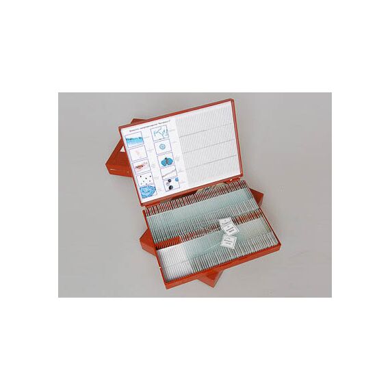 Комплектность: эпидермис листа - 15 шт., продольный разрез зерновки кукурузы - 15 шт., кожица лука - 15 шт., корневой чехлик - 15 шт., пыльца цветкового растения - 15 шт., срез ветки дерева - 15 шт., срез стебля травянистого растения - 15 шт., поперечный срез корня - 5 шт. Всего: 110 шт.