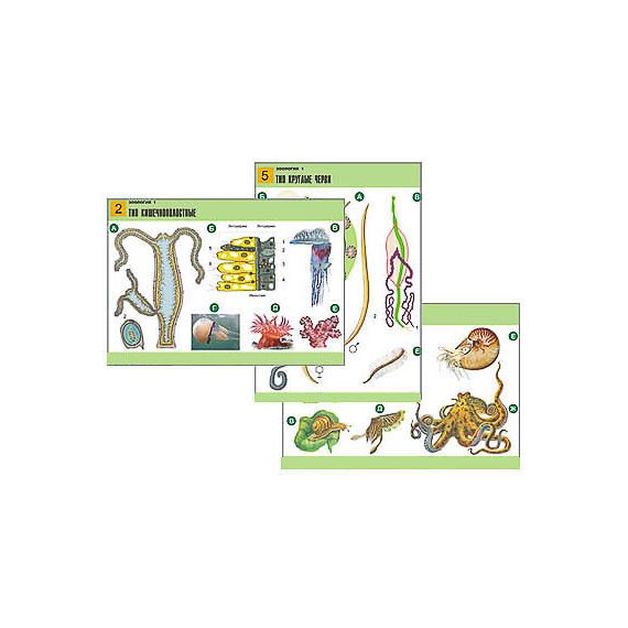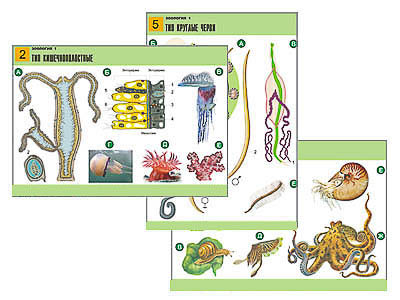 Перечень таблиц: 1. Подцарство Одноклеточные животные, или Простейшие. 2. Тип Кишечнополостные. 3. Тип Плоские черви. Свободноживущие черви. 4. Тип Плоские черви. Паразитические черви. 5. Тип Круглые черви. 6. Тип Кольчатые черви. 7. Тип Моллюски. 8. Тип Моллюски. Класс Двустворчатые. 9. Тип Членистоногие. Класс Ракообразные. 10. Тип Членистоногие. Класс Паукообразные. 11. Тип Членистоногие. Класс Насекомые. 12. Полезные насекомые. 13. Класс Насекомые. Неполный метаморфоз. 14. Класс Насекомые. Полный метаморфоз.