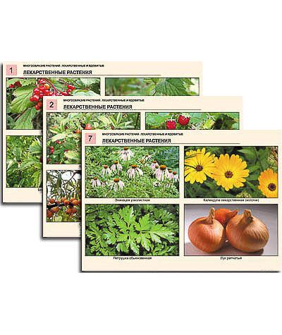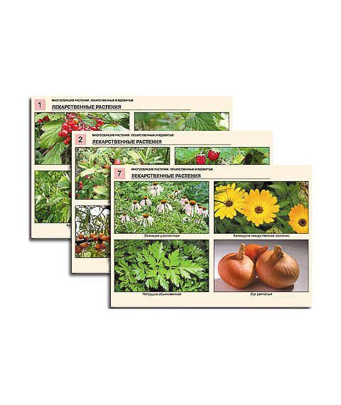 Описание Комплект таблиц по ботанике раздат. "Многообразие растений. Лекарственные и ядовитые" (16 шт., лам.)