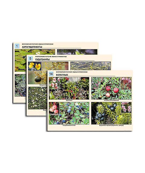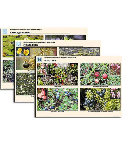 Описание Комплект таблиц по ботанике раздат. "Многообразие растений. Водные и прибрежные" (16 шт., лам.)