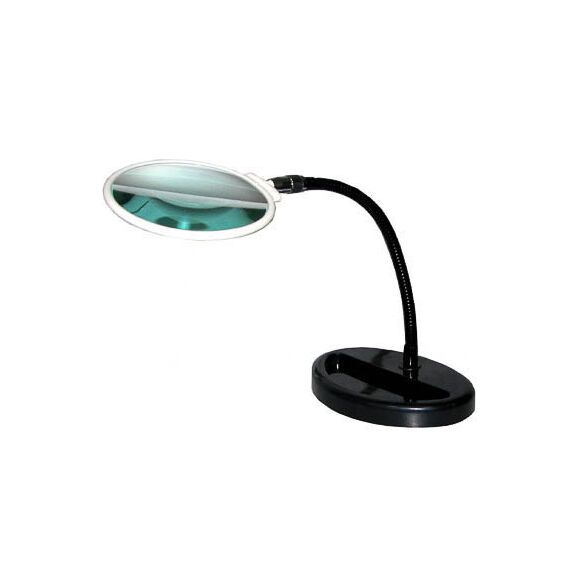 Лупа снабжена подставкой и регулируемым держателем, позволяющим наклонять и фиксировать линзу в нужном положении. В корпус изделия встроена светодиодная подсветка (батарейки в комплект не входят). Линза изготовлена из пластика.