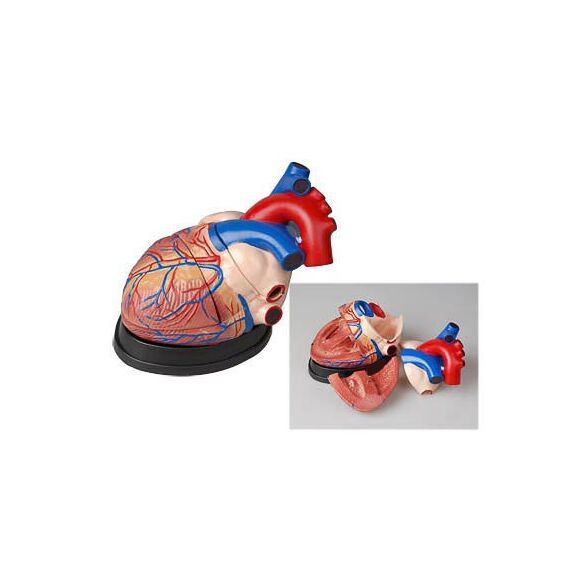Модель разборная, длиной не менее 30 см, изображает внутреннее строение сердца человека. Модель раскрашена.