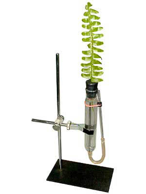 Прибор предназначен для демонстрации поглощения воды корнями, транспирации воды растением и движения воды по сосудам древесины при изучении курса биологии.