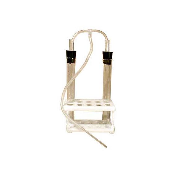Комплектность: пробирки – 2 шт., пробки резиновые с двумя отверстиями – 2 шт., пластиковая трубка с тройником и стеклянным мундштуком – 1 шт., трубки стеклянные длинные – 2 шт., трубки стеклянные короткие – 2 шт., штатив-подставка – 1 шт., руководство по эксплуатации – 1 шт.
