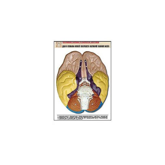 Рельефная таблица "Доли и извилины нижней поверхности полушарий головного мозга" (А1, матовое лам.)