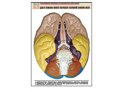 Рельефная таблица "Доли и извилины нижней поверхности полушарий головного мозга" (А1, матовое лам.)