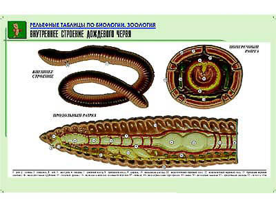 Рельефная таблица "Внутреннее строение дождевого червя" (формат А1, матовое ламинир.)