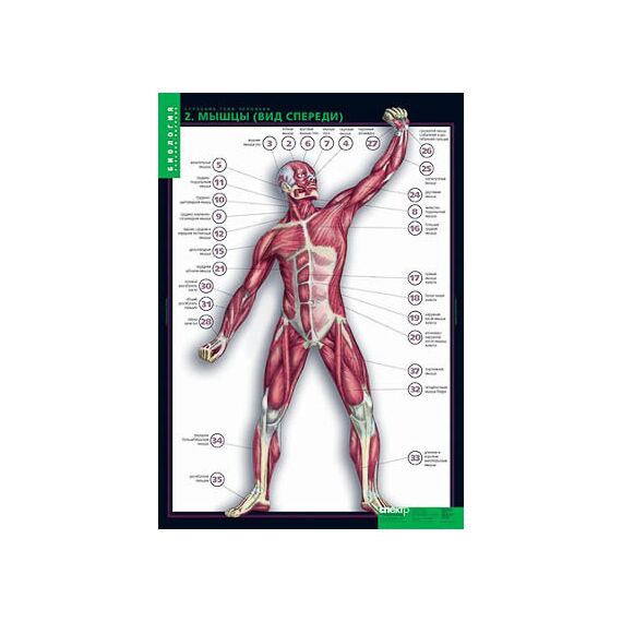 Скелет. Мышцы (вид спереди). Мышцы (вид сзади). Кровеносная и лимфатическая системы. Дыхательная система. Пищеварительная система. Выделительная система. Нервная система. Женская половая система. Мужская половая система.Раздаточный материал - карточки 80 шт.
