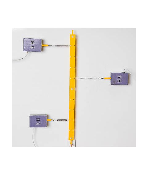Комплектность: магнитные держатели с трубками на концах – 2 шт., блоки – 2 шт., грузы (50 г) – 10 шт., пластина неправильной формы (50 г) с отверстиями – 1 шт., рычаг-линейка – 1 шт., угольник для измерения плеч – 1 шт., пружина длинная – 1 шт., пружины короткие – 3 шт., отвес – 1 шт., нить с петлями на концах – 1 шт., нить с петлями на концах и в середине – 1 шт., петля из нити – 3 шт., маркер – 1 шт., набор датчиков цифровых (в следующей комплектации: измерительный блок – 1 шт., модуль «СИЛА» с возможностью независимой индикации – 1 шт., модуль-динамометр «5 Н» – 3 шт., провод с USB-разъемом – 1 шт., адаптер для включения в сеть (220 В, 50 Гц) – 1 шт., провода для соединения модуля «СИЛА» с динамометрами – 3 шт., стержень для крепления модулей «5 Н» в штативе – 3 шт.), компьютерный диск – 1 шт., руководство по эксплуатации с методическими рекомендациями – 1 шт.