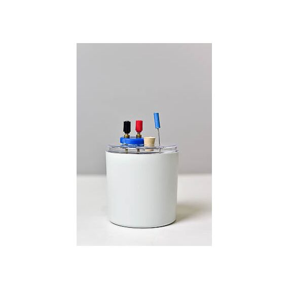 Прозрачная крышка имеет отверстия для размещения нагревательного элемента, мешалки и термометра. Съемный спиральный нагревательный элемент вмонтирован в крышку и работает от 0 до 6 В постоянного тока.